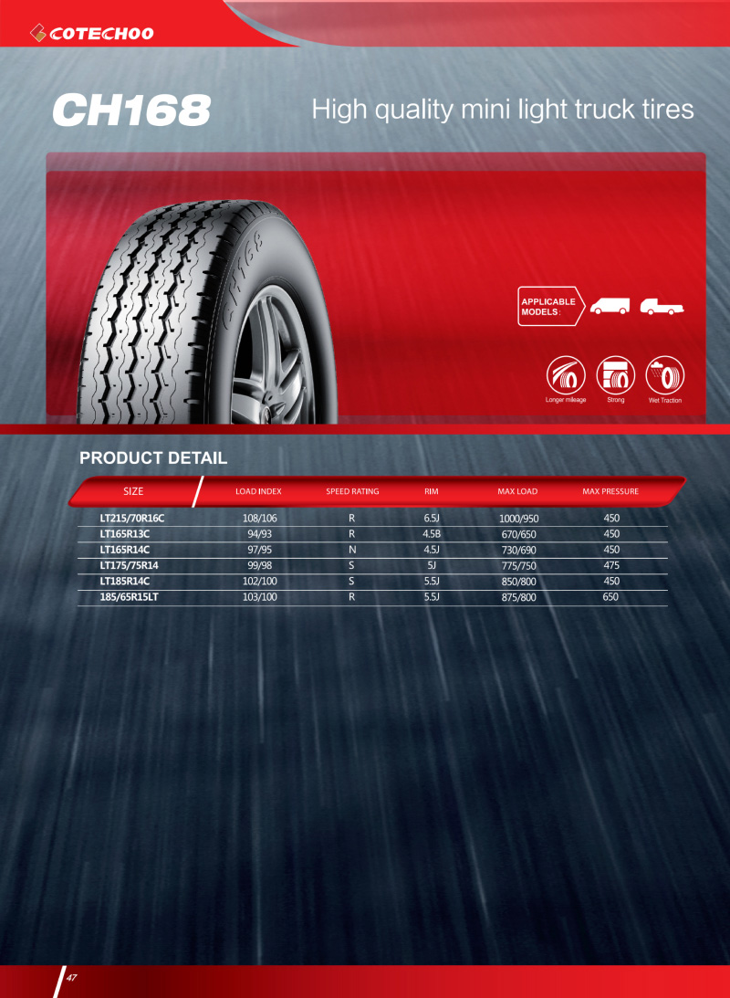 精品轻载花纹曲折的花纹沟槽加双层胎体结构,更强的承载力,深花纹设计提供卓越的耐久性能。