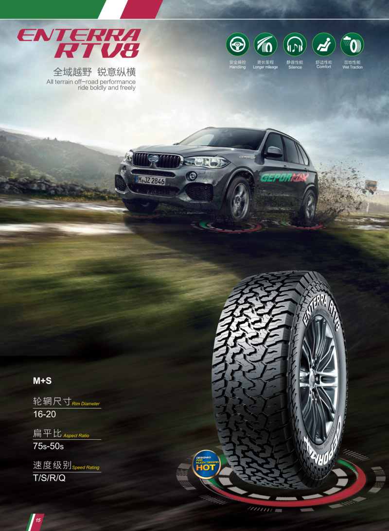 独特花纹设计,在非铺装路面上具有超强的耐用性和抓地力,是一款适用各种路况的越野专用轮胎。