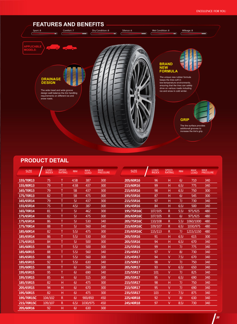 特有全新橡胶配方,驰骋寒冬,驾驭冰雪适合各种路面,很好平衡了轮胎在不同的冰雪路面上对抓地和操控的需求。