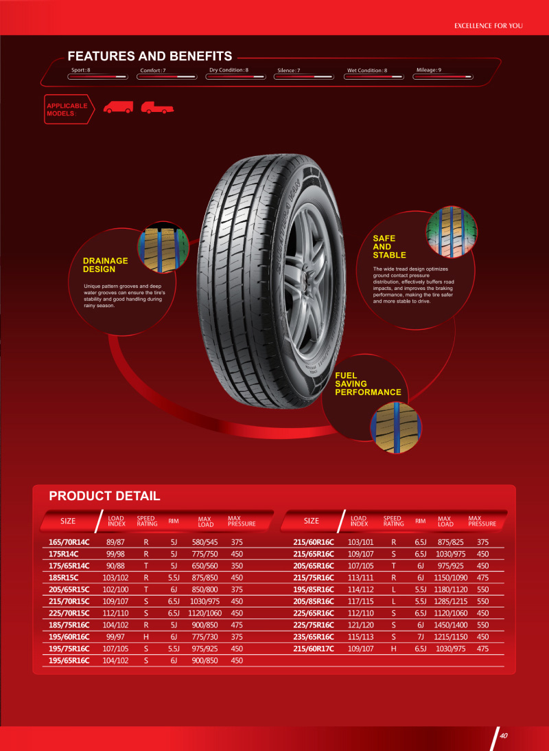 SUMTIRA VAN 轻型商用车用轮胎,独特的花纹沟,深排水槽,有较好的排水性和经济燃油性。