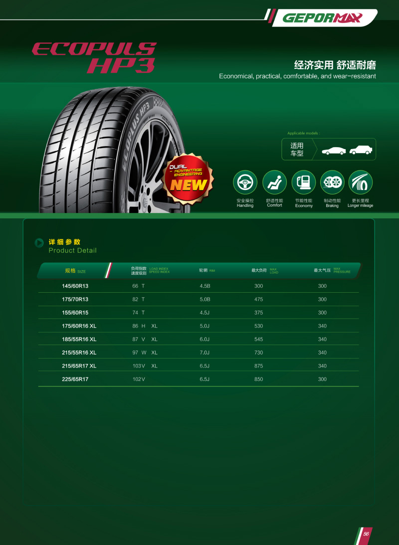 全新升级低滚阻花纹,静音节油,经济实用,舒适耐磨。