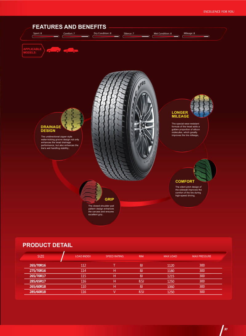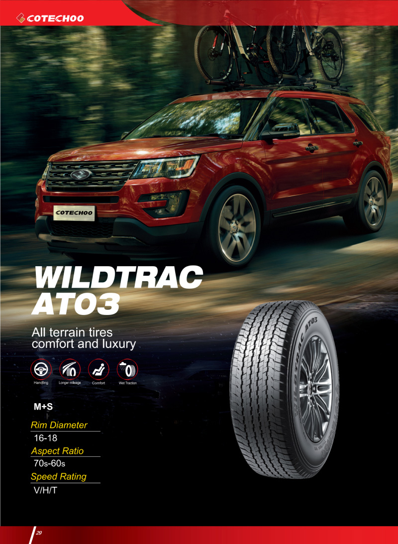 一款优秀的全地形轮胎,突破性技术塑造胎面结构,对各自路况具有良好的适应能力。