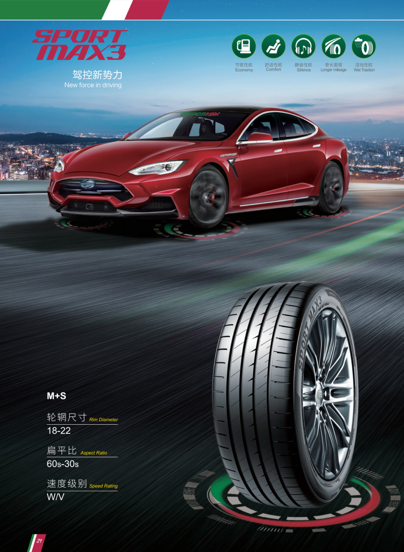 新能源汽车用EV轮胎,全新花纹设计,具有良好操控性与优秀静音性,低滚阻配方,让您的新能源汽车更省电。